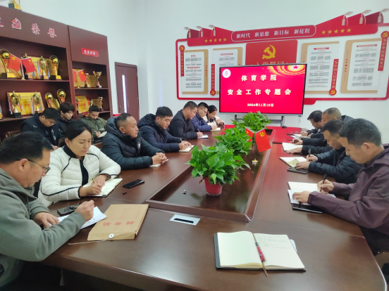 11月19日,体育学院在一楼党员活动室召开安全工作专题会,深入学习贯彻习近平总书记关于安全稳定工作的重要指示批示精神,进一步分析当前校园安全形势,安排部署近期安全工作任务。班子成员、教研室主任和辅导员参会,会议由范伟杰主持。